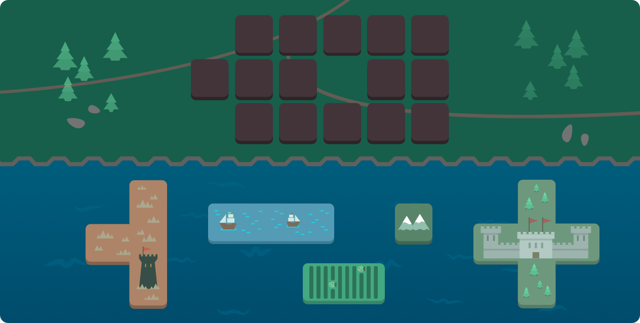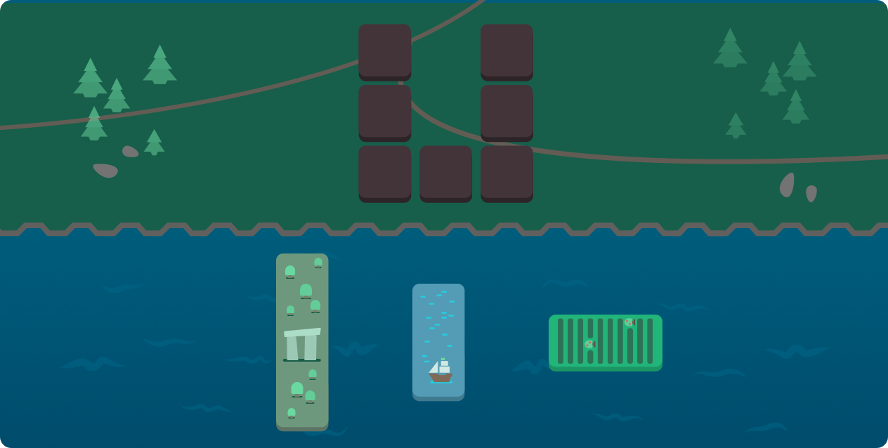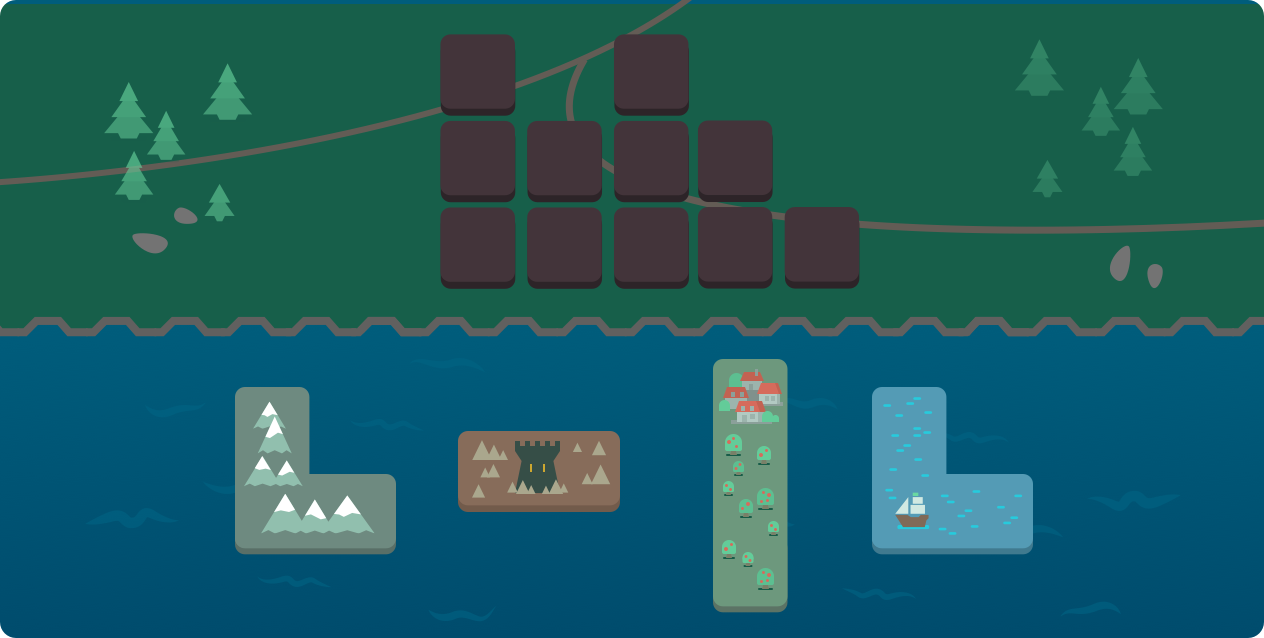 Fit the blocks in the sea into the grid on land.